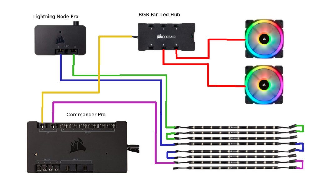 | LED strips node | 1x Corsair Lighting Node Pro |