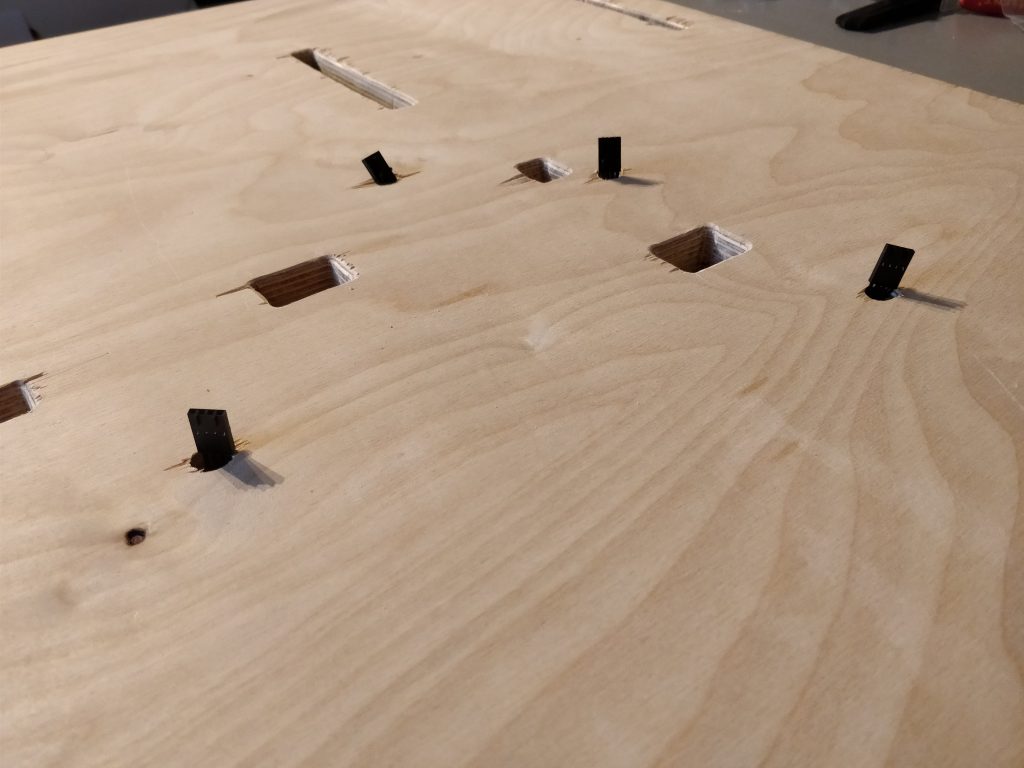 You should have some files and rasps at home, if you don’t, get some. You will need them for the final touch on the cable holes. Work them until they look as you wish – we were okay with curved rectangles – they will be covered with adhesive foil later on anyway. It’s just about making them the same size from the top and bottom side of the main board, and a little bit better looking.